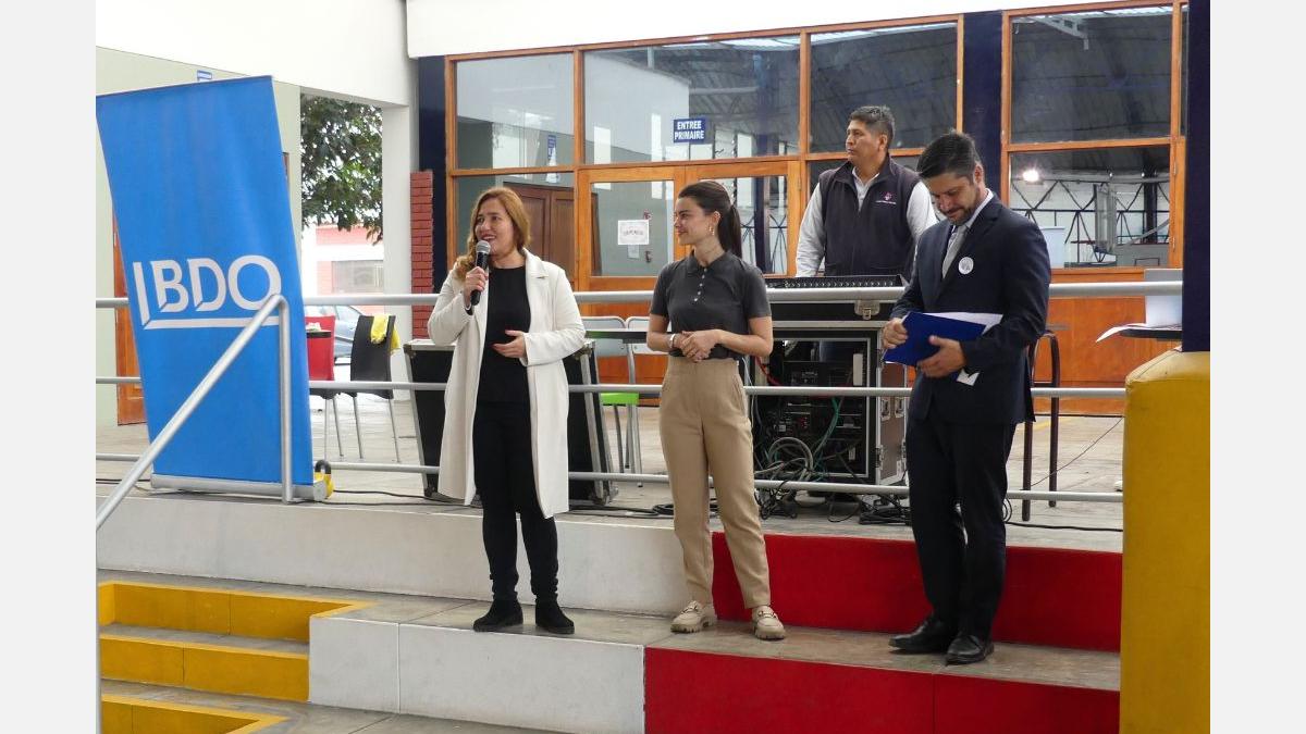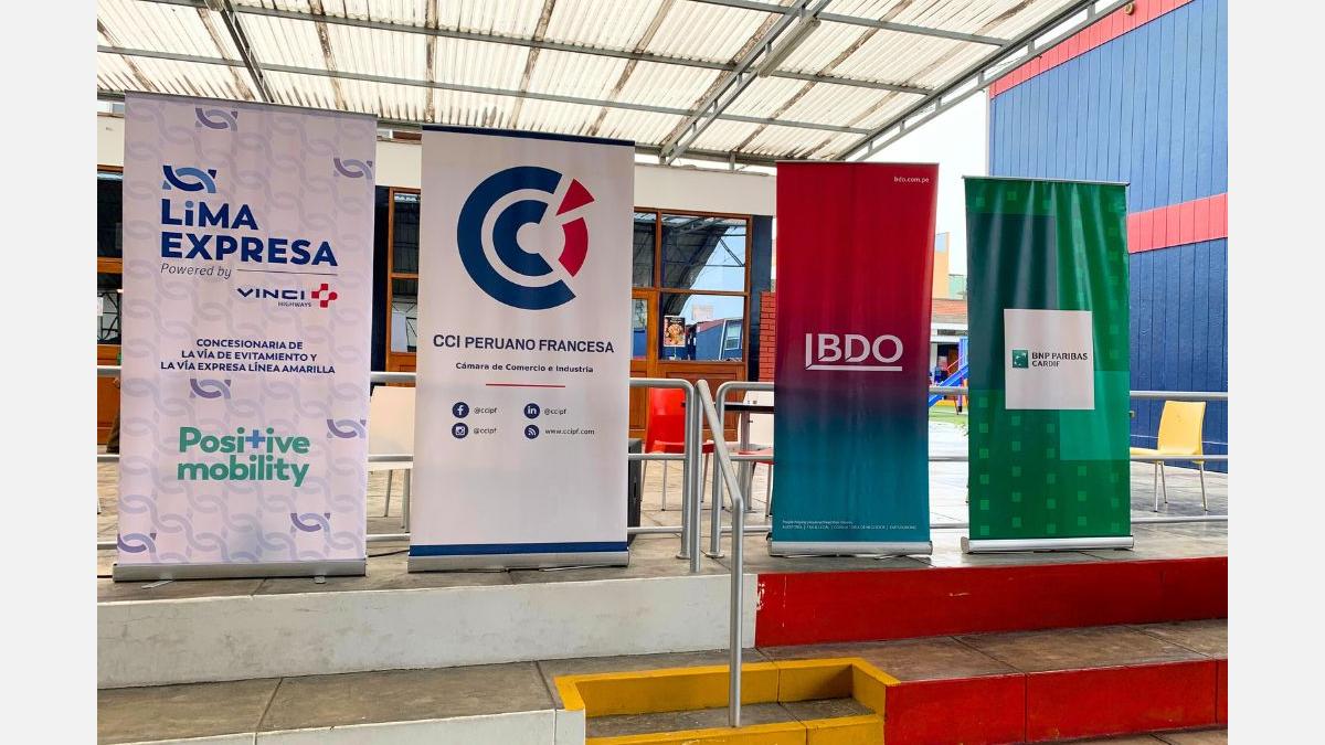 Para iniciar el evento, se realizaron los discursos de nuestra Vicepresidenta Janis Rey, Ceo de Vinci Highways Perú y Gerenta General de Lima Expresa, y del Director de la primaria del liceo, Fabien Debutte.