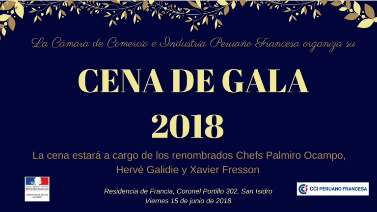 La Chambre de Commerce et d'industrie Française a le plaisir de vous présenter son diner de Gala 2018. Nous profiterons d’un diner franco péruvien…