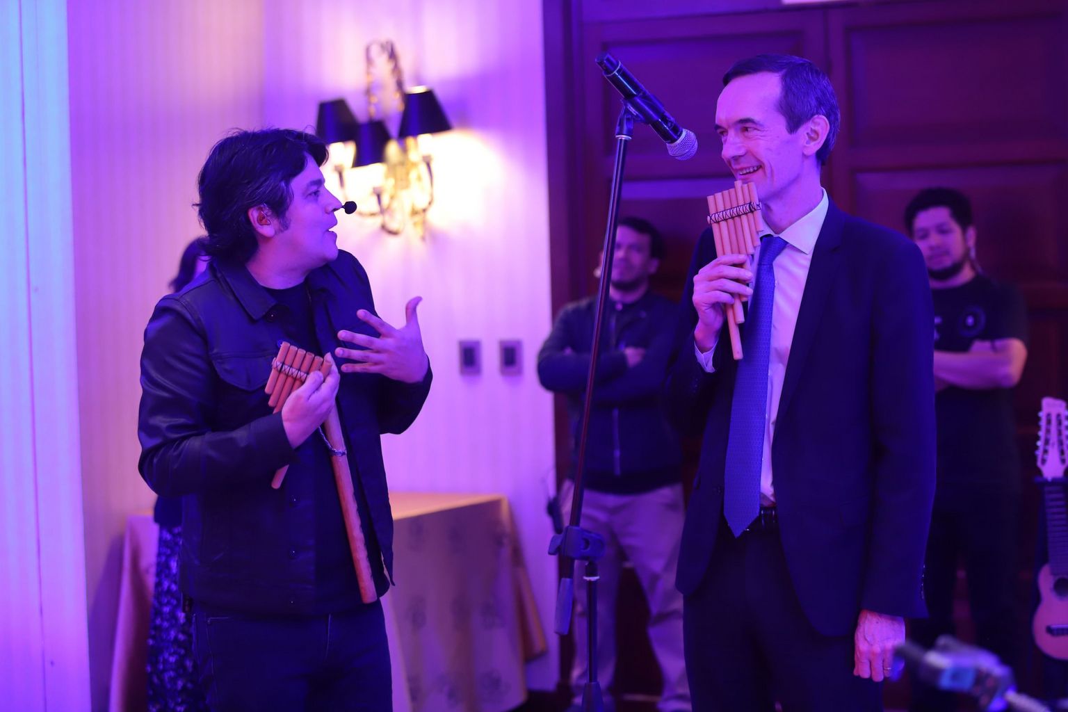 pudieron disfrutar de algunos piqueos, copas de vino de francés y los discursos del Embajador