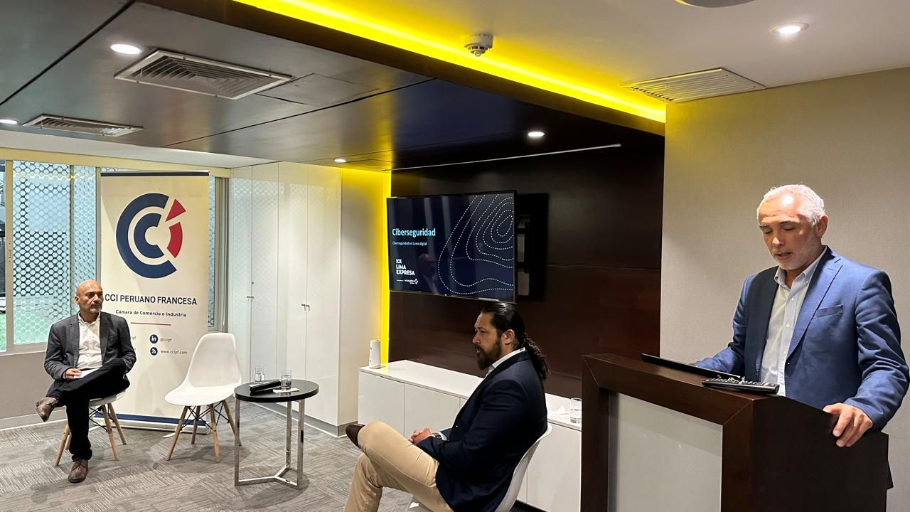 El evento contó con la participación del Senador Francés Olivier Cadic, Javier León, Gerente de Tecnología, Procesos e Innovación de Lima Expresa, y Christian Morris, CISO Perú - Jefe de Ciberseguridad en ENGIE Perú. La moderación estuvo a cargo de Ángel Lay, especialista en ciberseguridad.