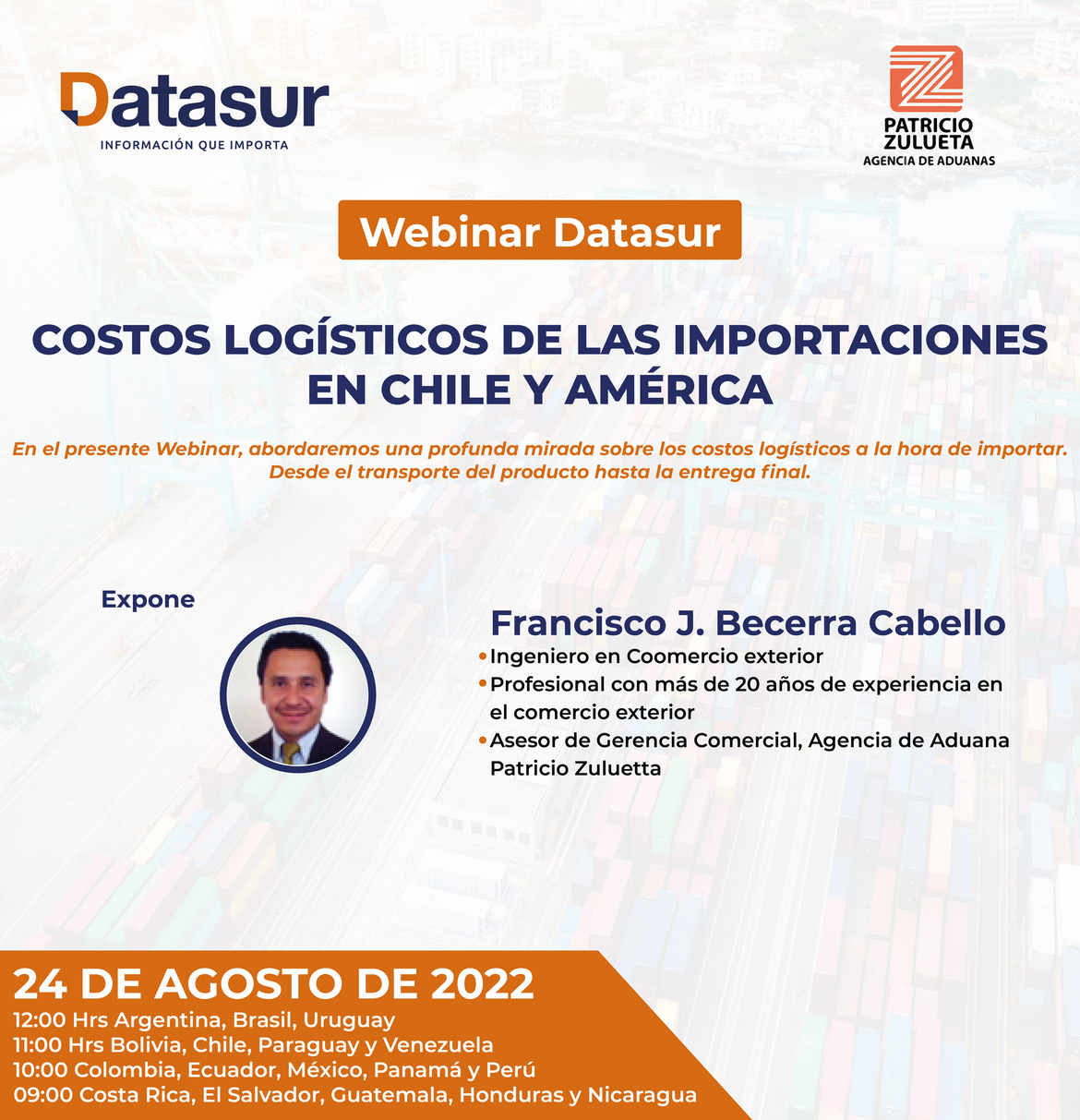 Datasur tiene un nuevo webinar que no te puedes perder. Este 24 de agosto descubre los costos logísticos de las importaciones en Chile y América.
