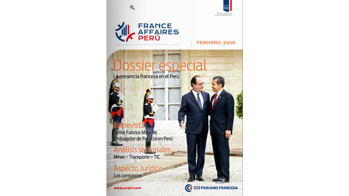 En el marco de la visita presidencial del 23 de febrero, la CCIPF publico la segunda edición de su revista France Affaires-Perú.