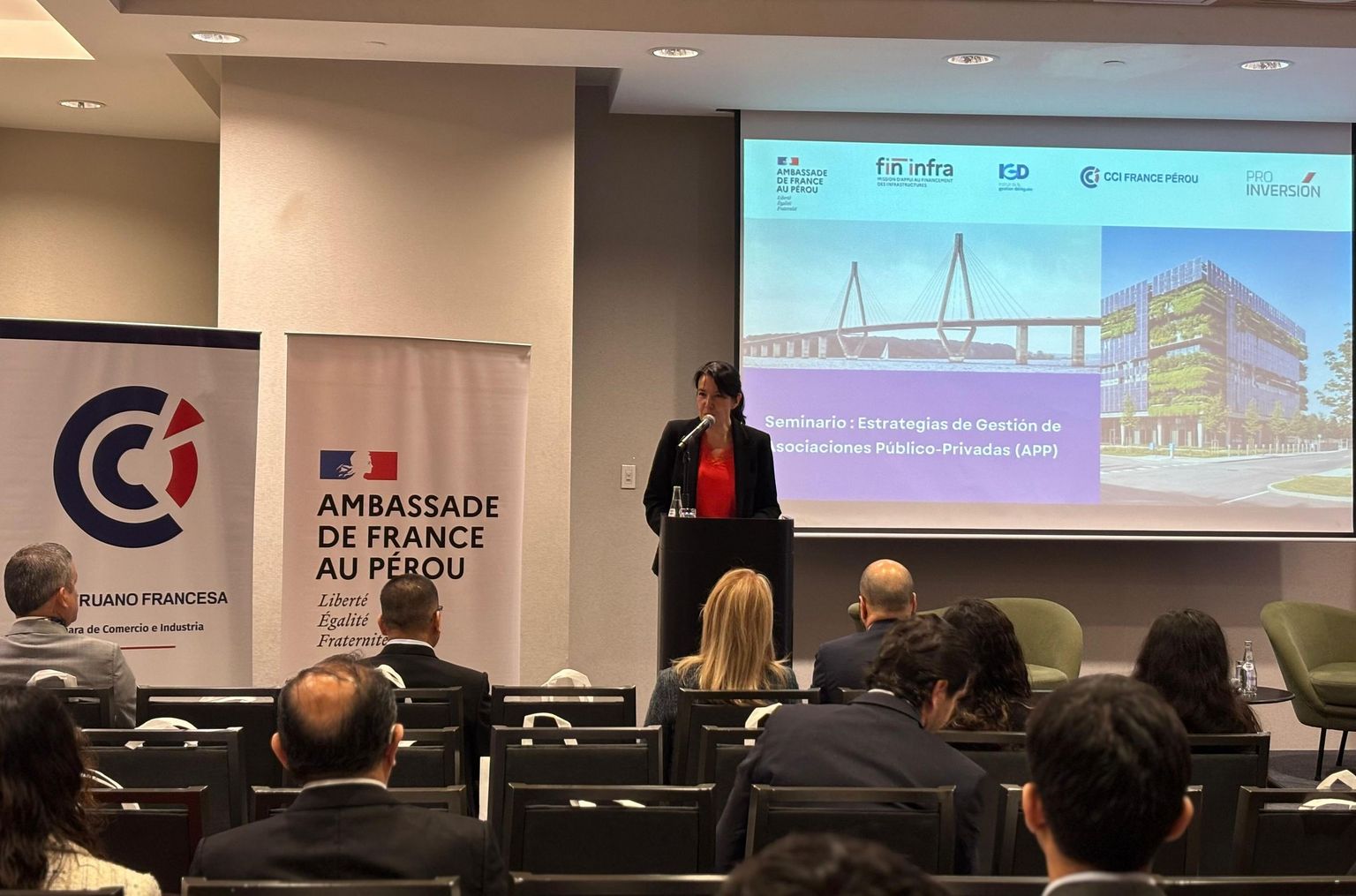 El seminario, inaugurado por la Embajadora de Francia, Sra Nathalie Kennedy, reunió a representantes del MEF, de ProInversión, de empresas del sector infraestructura y a los expertos franceses. Las sesiones incluyeron: