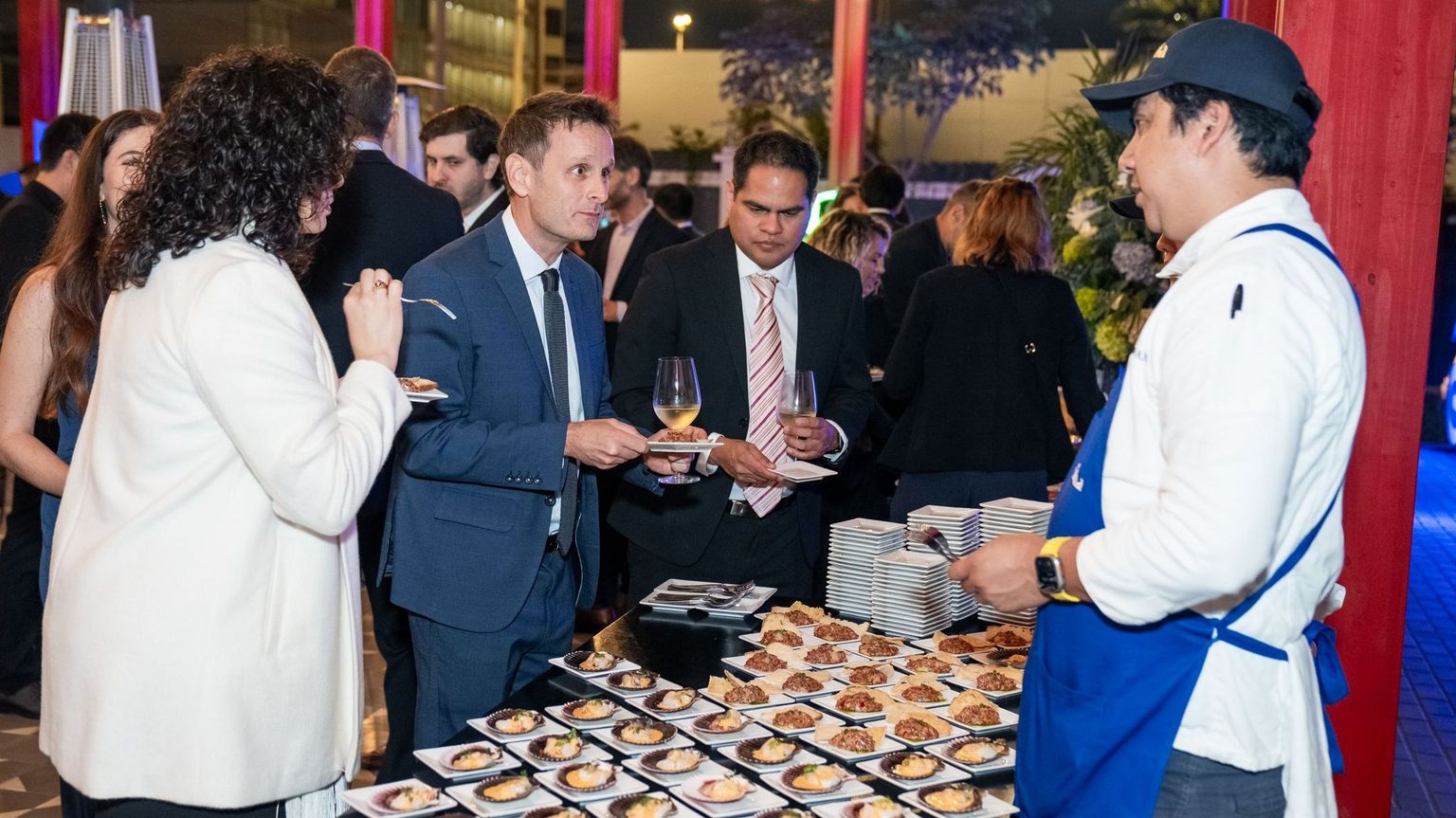 Tras un brindis con champagne de Sabores de Francia, los invitados fueron conducidos hacia la segunda parte de la celebración, donde los esperaban las propuestas culinarias de Sodexo y el restaurante Awicha, acompañadas por una barra de vinos de Sabores de Francia. Los chefs presentaron sus conceptos gastronómicos antes de dar paso a la degustación, teniendo la oportunidad de compartir sus conceptos culinarios con el público, haciendo de la experiencia más completa. Cabe destacar que el servicio estuvo a cargo de estudiantes y graduados de Le Cordon Bleu, quienes aportaron profesionalismo y calidez a la atención durante toda la velada.