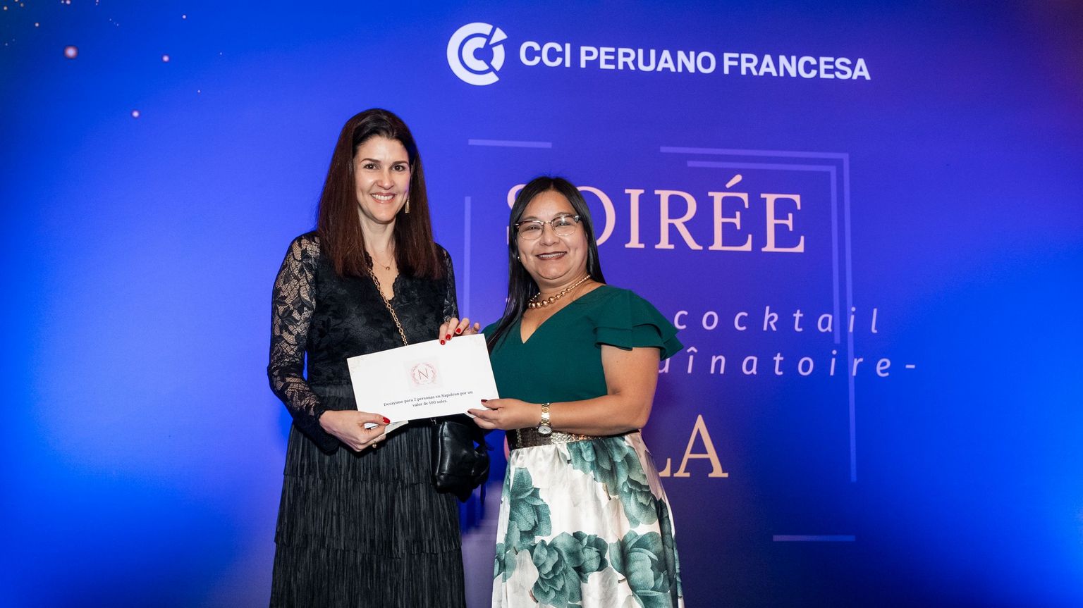La noche continuó con un show musical del grupo Zafradú, que fusionó percusión, rap, zapateo y ritmos contemporáneos, aportando una atmósfera vibrante y cultural. Posteriormente se realizó el esperado sorteo, con premios ofrecidos por nuestras empresas asociadas: un desayuno en Napoléon, una botella de champagne Prince Saint Laurent de Sabores de Francia, un pack de vinos de La Maison Sicet, una noche en el Hotel Pullman Miraflores, tres tarjetas de consumo Pluxee, y el premio mayor: un pasaje a París en Business Economy cortesía de Air France.