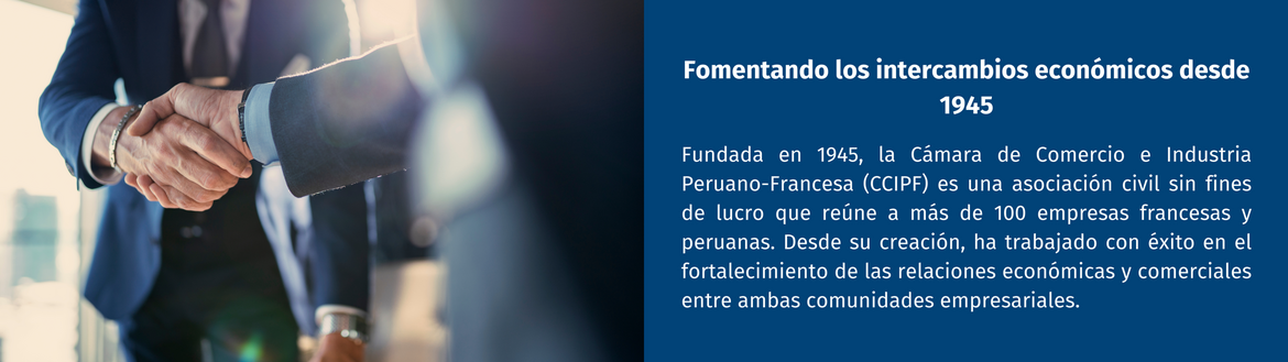 Presente en Perú, la Cámara de Comercio e Industria Peruano-Francesa (CCIPF) facilita los intercambios comerciales entre Francia y Perú, apoyando a las empresas en su desarrollo.