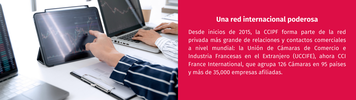 Como miembro de la red CCI France International, forma parte de un ecosistema de 126 Cámaras en 95 países, impulsando oportunidades de negocio a nivel global.