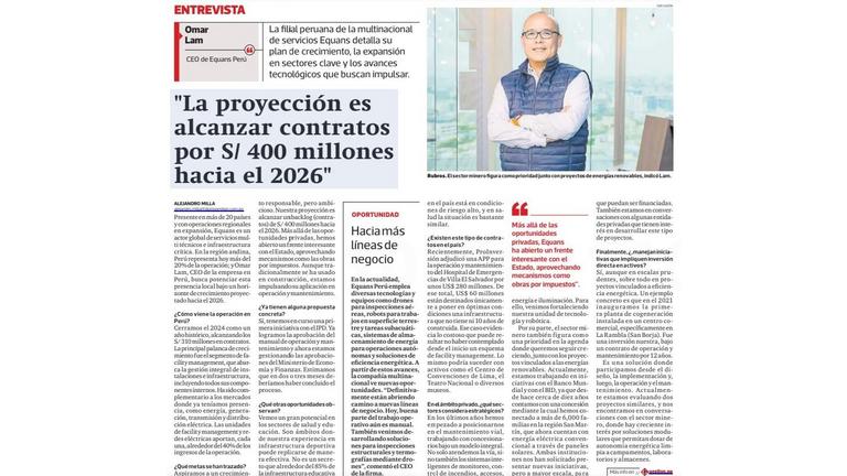 El Perú representa más del 20% de la operación regional y la empresa proyecta sumar S/400 millones en contratos al 2026.