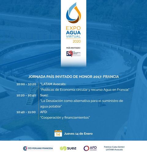 Para este evento estratégico, contamos con actores claves del sector del agua y de la responsabilidad ambiental: el bufete de abogados LATAM Avocats, el experto en tratamiento de aguas SUEZ y el banco de desarrollo del Estado Francés la AFD.