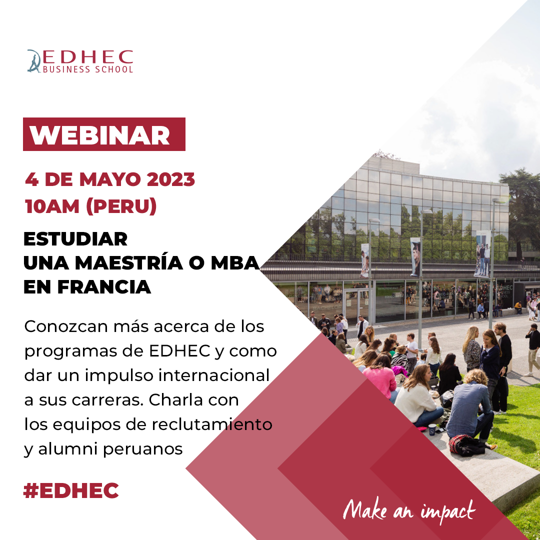 EDHEC Business School vous invite à découvrir ses programmes et le procesus d'admission le 4 mai 2023 à 17h (FR) / 10h (PE) !