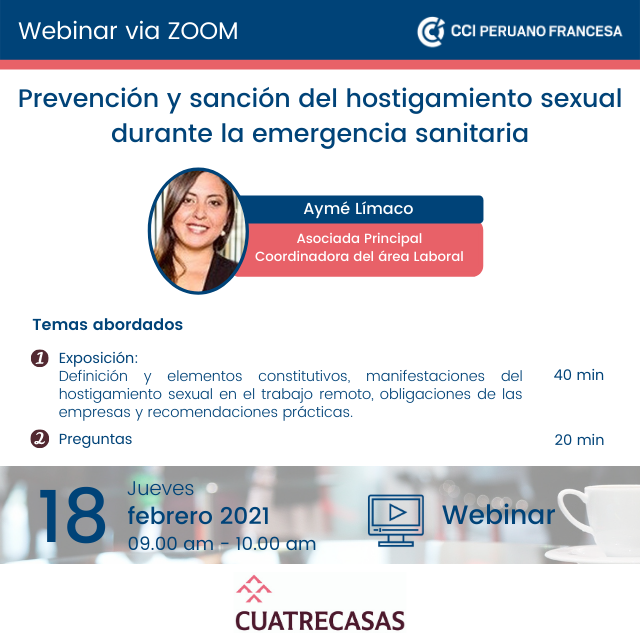 Este webinar contará con la participación de Aymé Límaco Chahua, Asociada Principal y Coordinadora del área Laboral de Cuatrecasas, que tocará los siguientes temas: