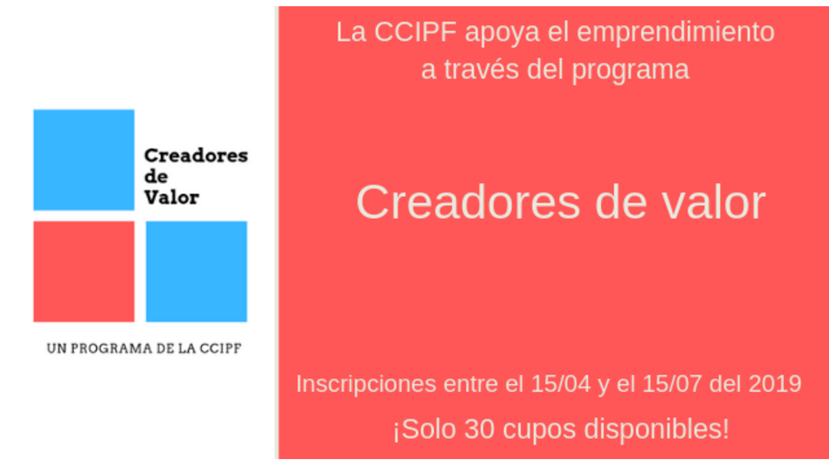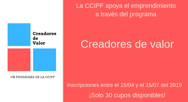 Dans le but d'inclure plus de créateurs d'entreprises à ses activités, la CCIPF crée le Programme "Creadores de Valor". Les participants sélectionnés pourront partager leur expérience, exposer et participer à des conférences, utiliser une partie des installations de la CCIPF et participer au Trophée CCIPF pour gagner des sessions de mentoring avec les entreprises françaises les plus importantes au Pérou.