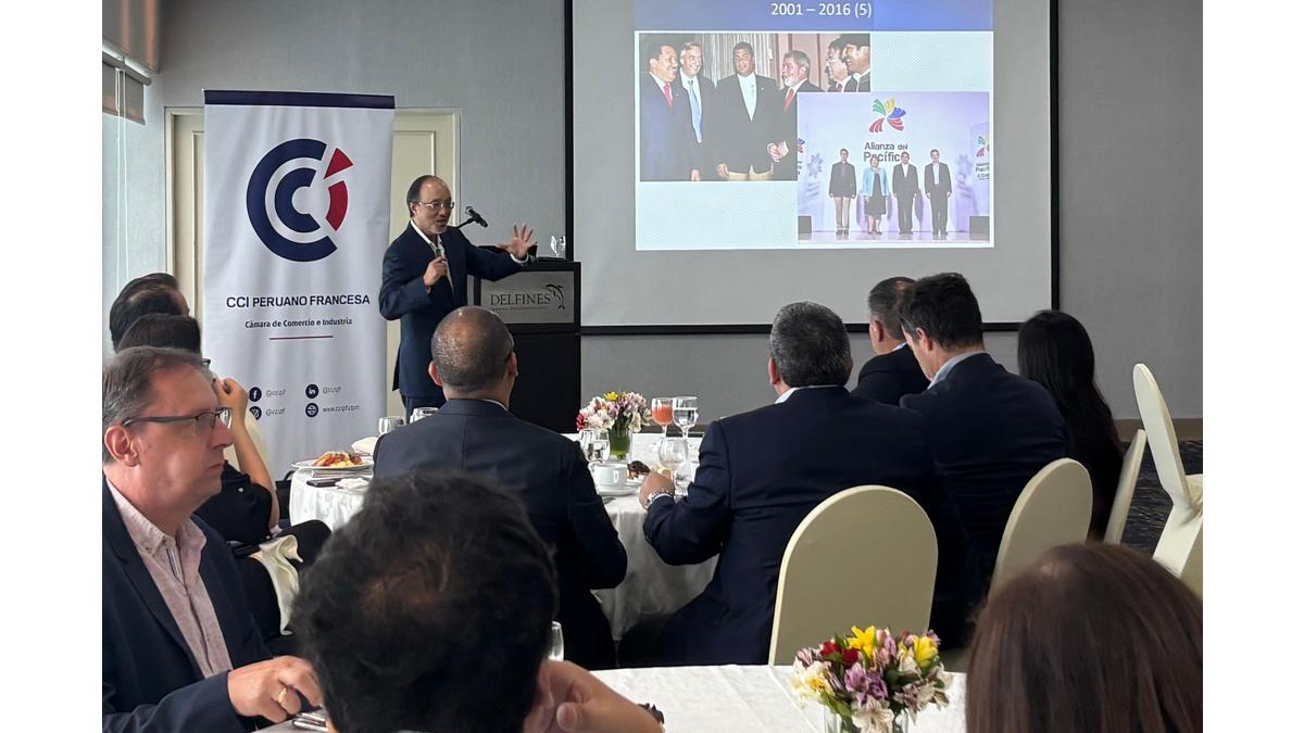 Representantes del empresariado franco peruano y miembros de nuestra comunidad pudieron escuchar de la ponencia del Sr. Tanaka sobre Las “paradojas peruanas” y lo que está en juego en las elecciones 2026.