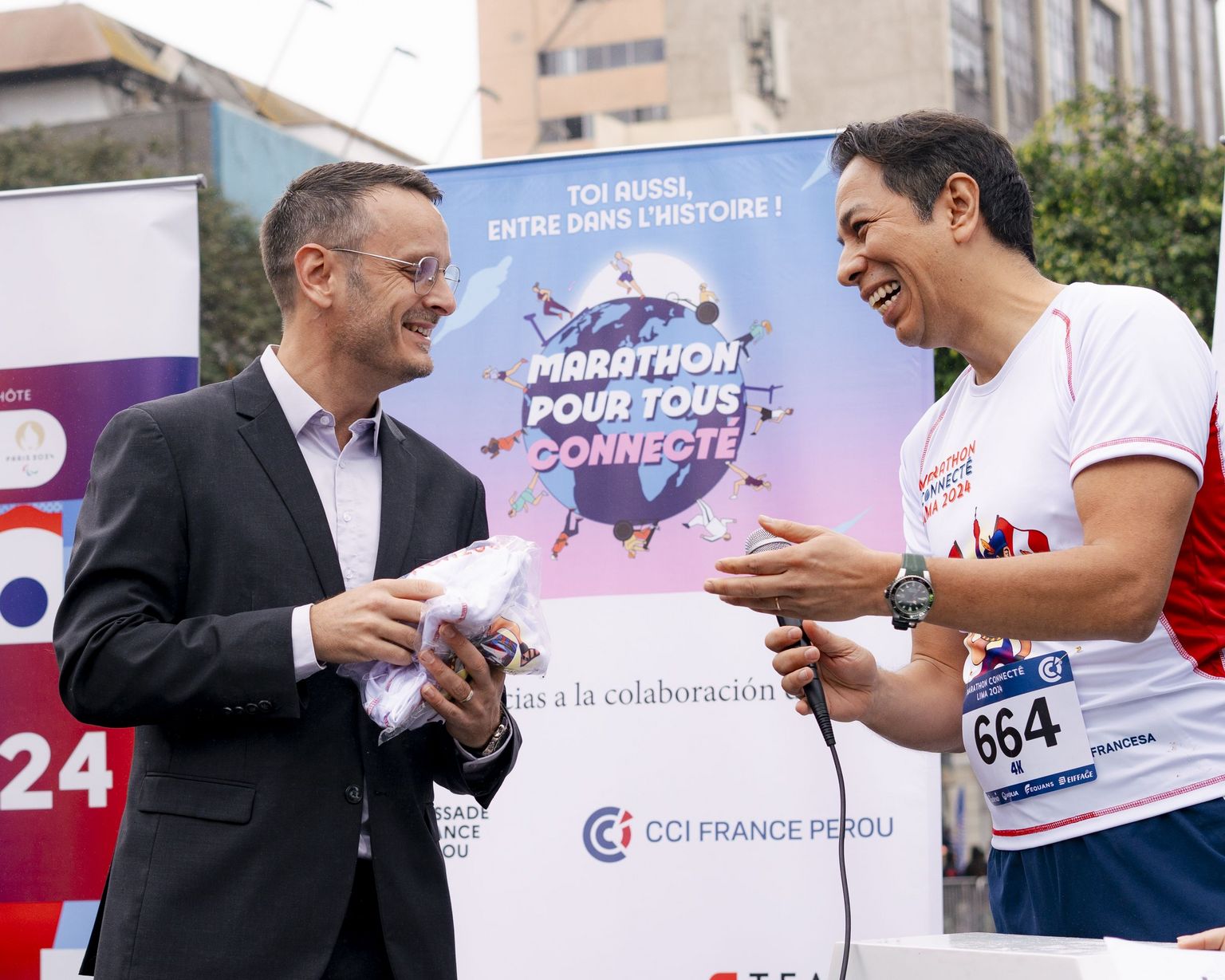 El domingo pasado, la Cámara de Comercio e Industria Peruano-Francesa (CCIPF) organizó con gran éxito la Marathon Pour Tous Connecté en colaboración con la Embajada de Francia, la Municipalidad de Miraflores y con el apoyo de las empresas Equans Perú, Veolia, Sodexo y Eiffage. Este evento se desarrolló en el contexto de los recientes Juegos Olímpicos de París 2024, promoviendo el deporte y un estilo de vida saludable entre el público.