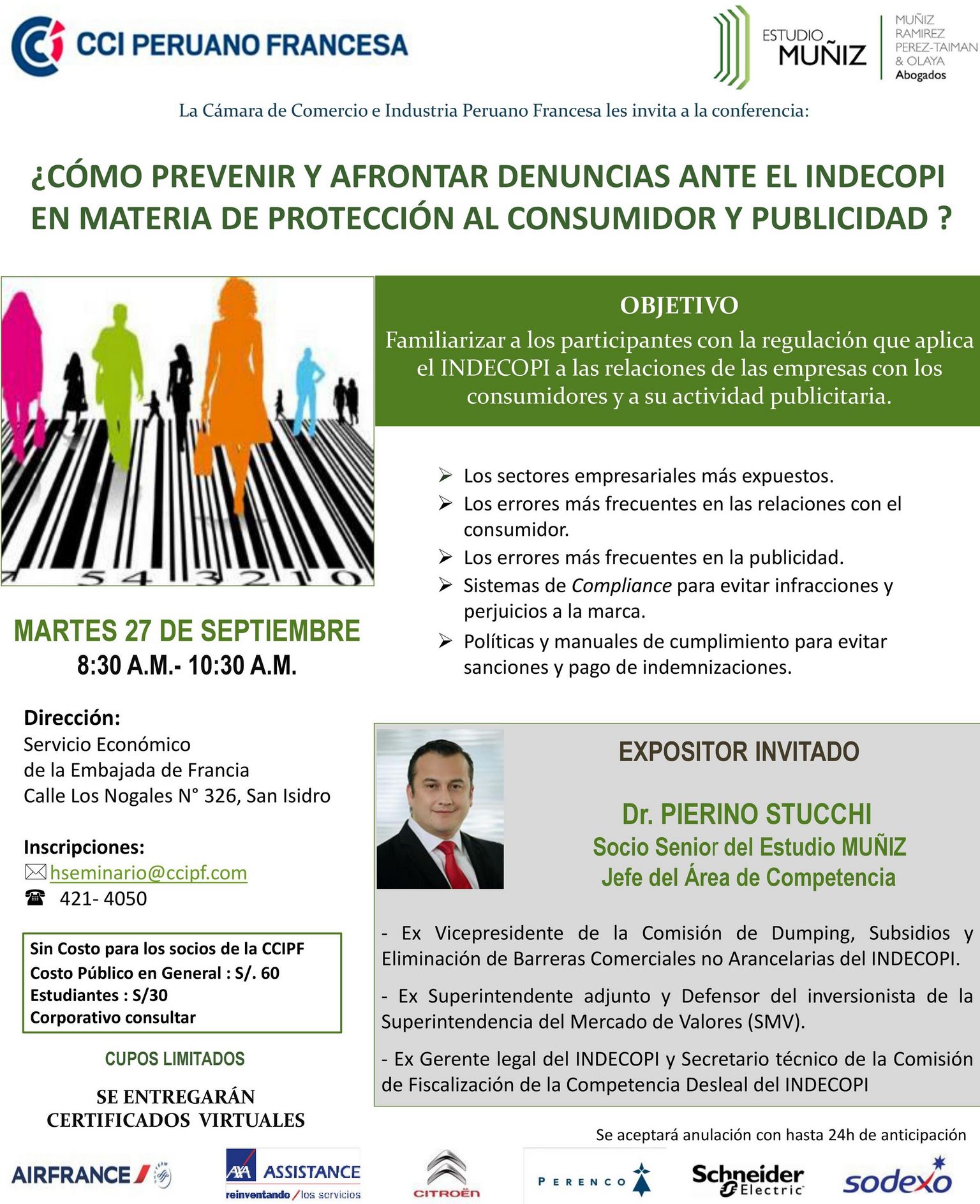 "Comment prévenir et affronter les plaintes à INDECOPI en matière de droit du consommateur et publicité?" avec la participation du Cabinet Muñiz