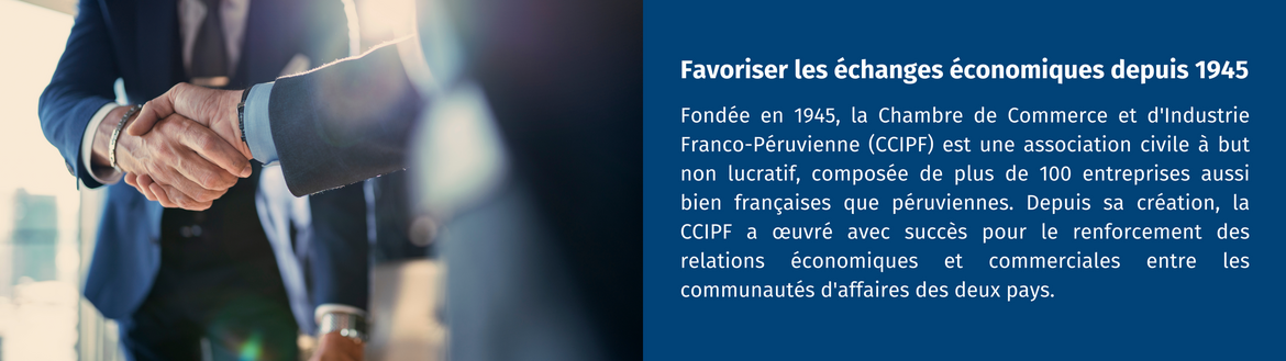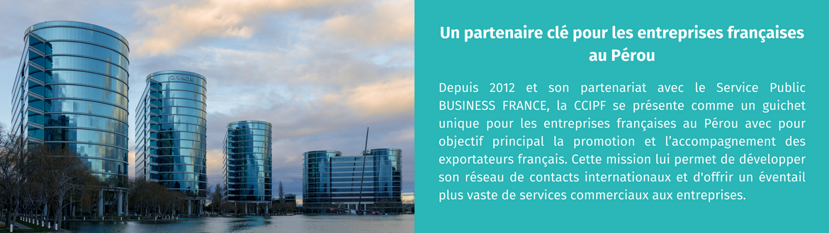 Présente au Pérou, la Chambre de Commerce et d'Industrie Péruano-Française (CCIPF) facilite les échanges commerciaux entre la France et le Pérou en accompagnant les entreprises dans leur développement.