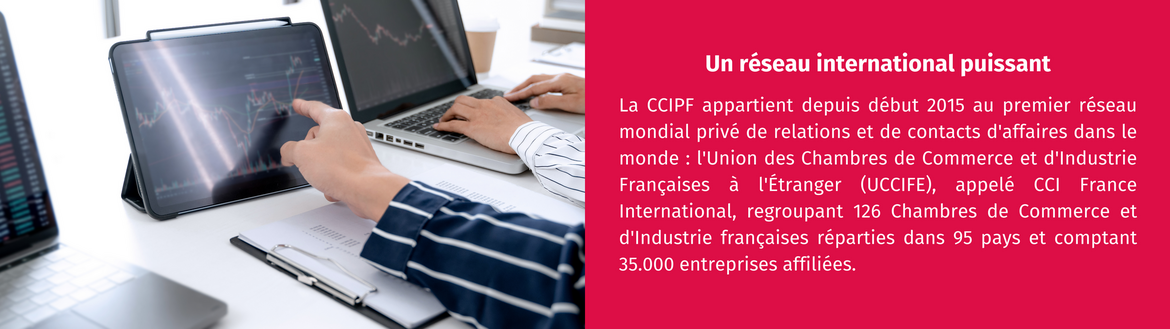 Membre du réseau CCI France International, elle fait partie d’un écosystème de 126 Chambres dans 95 pays, favorisant les opportunités d’affaires à l’international.